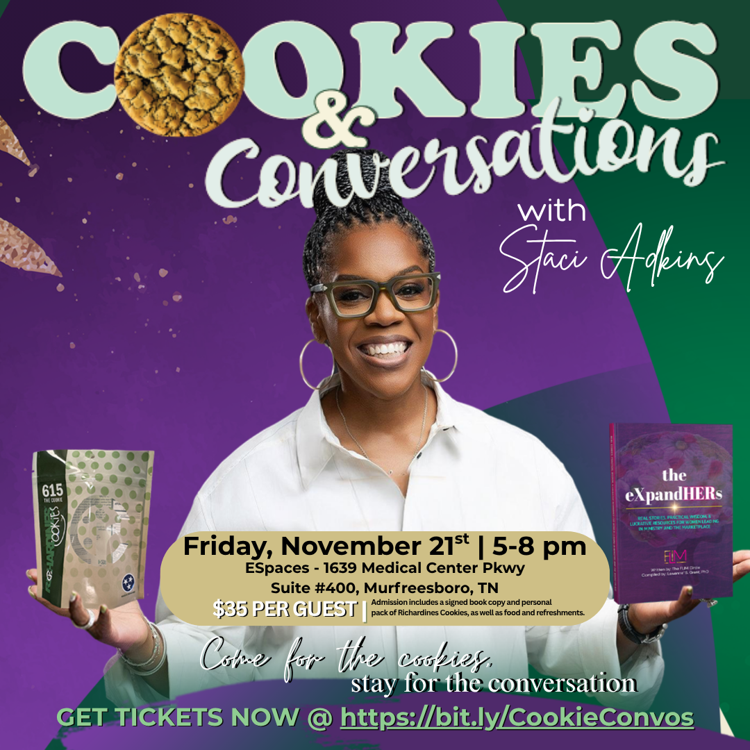 TICKETSJoin us for a night of excitement as we have get into some great conversation with our CEO and author Staci Adkins. This will be a fun filled early evening with Food and lots of laughter. Get your tickets today